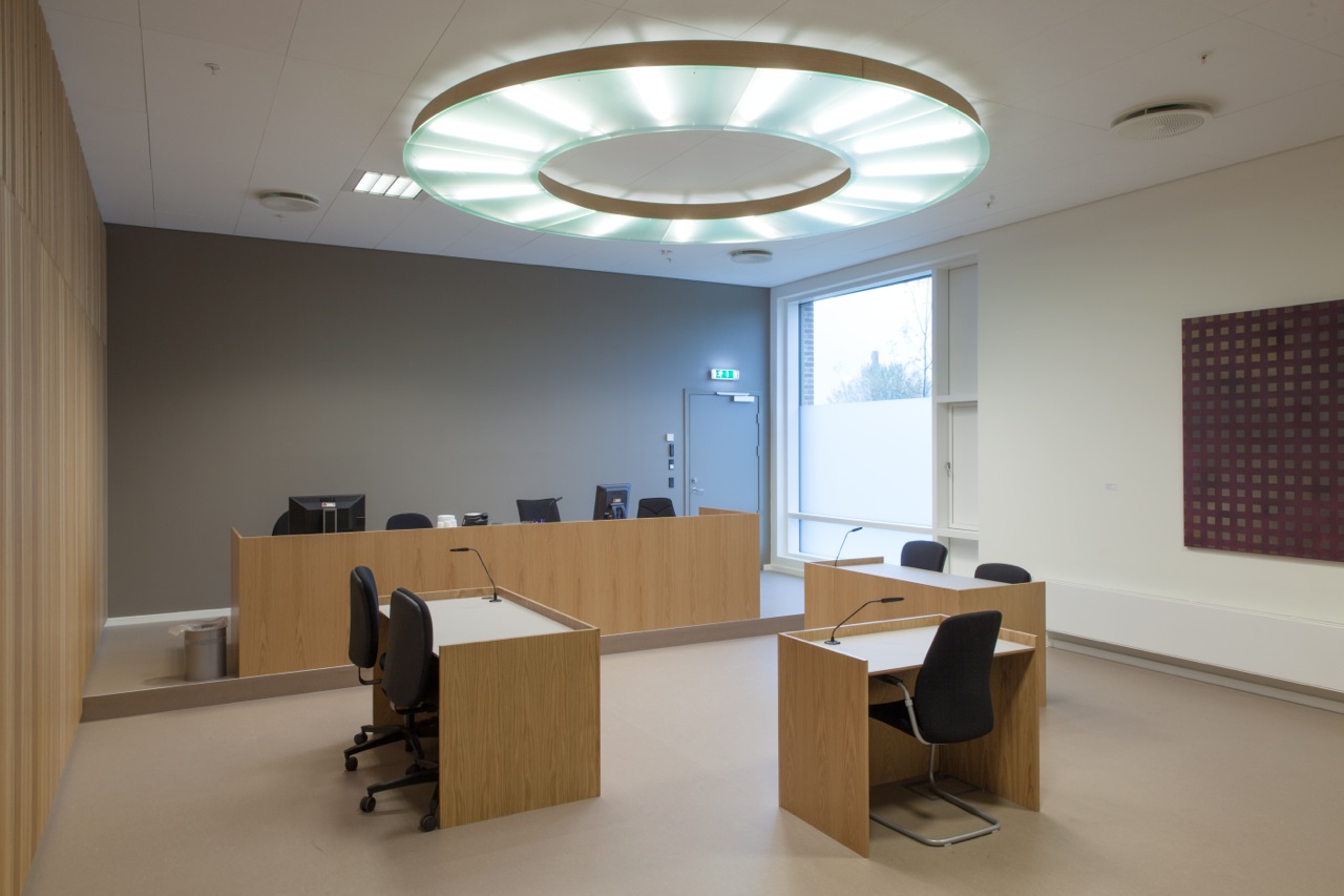- I used this method for the lamps for the court rooms and developed two large and one smaller round lamp type. The round shape reflects the architect’s idea of the court room as an ancient round thingstead, where people used to meet. I also think that a decorating artist should stay within this very stringent room, where the lighting reflects the purpose of the room.